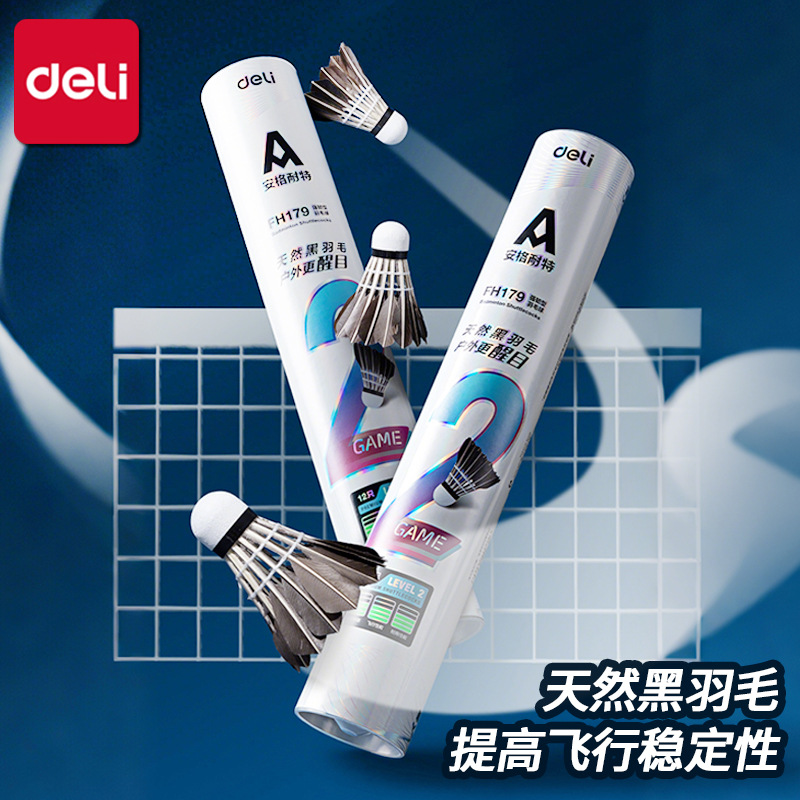デリ FH179 アンゲネット バドミントン 耐久性 12個パック ナチュラルブラックフェザー 本物の羽根 屋内外トレーニングボール
