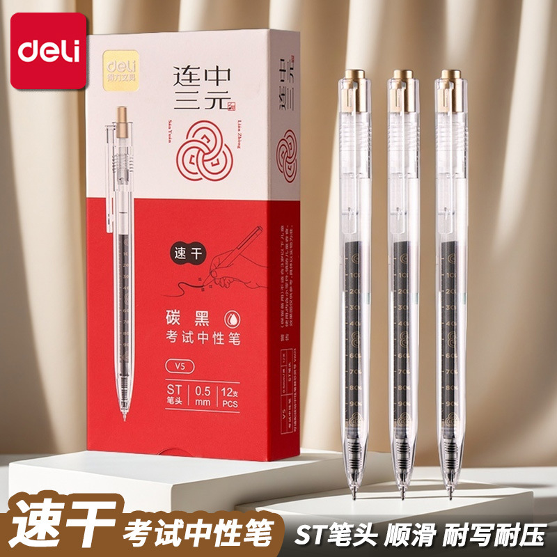 デリ文具 ゲルペン 学生の宿題用 大容量 速乾性 STヘッド テスト用紙筆 プレス黒水ペン