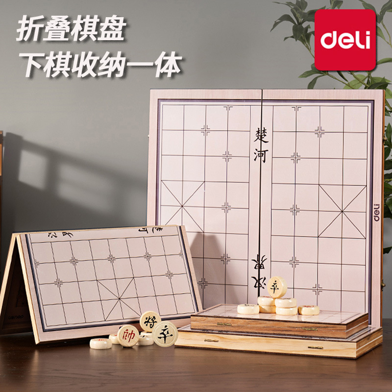 デリ中国チェス チェス盤付き 学生と子供向け 教育的早期教育 小型無垢材チェス 大型無垢材チェス盤