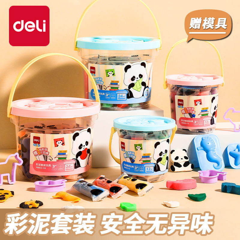 有力xm 853パンダシリーズバケツ入りカラー泥12色24色幼稚園児童手作り泥安全異臭なし