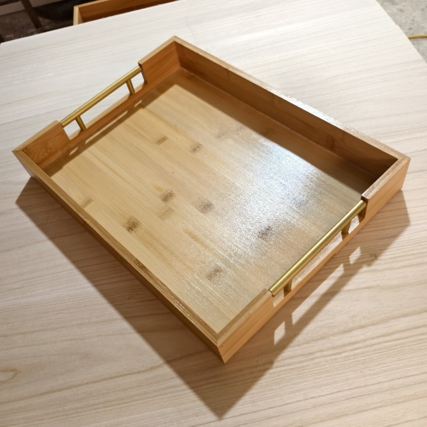 木製の長方形のトレーはシンプルで携帯的なお茶の皿のホテルのレストランの果物のトレーのメーカーの卸売りはlogoを印刷することができます。