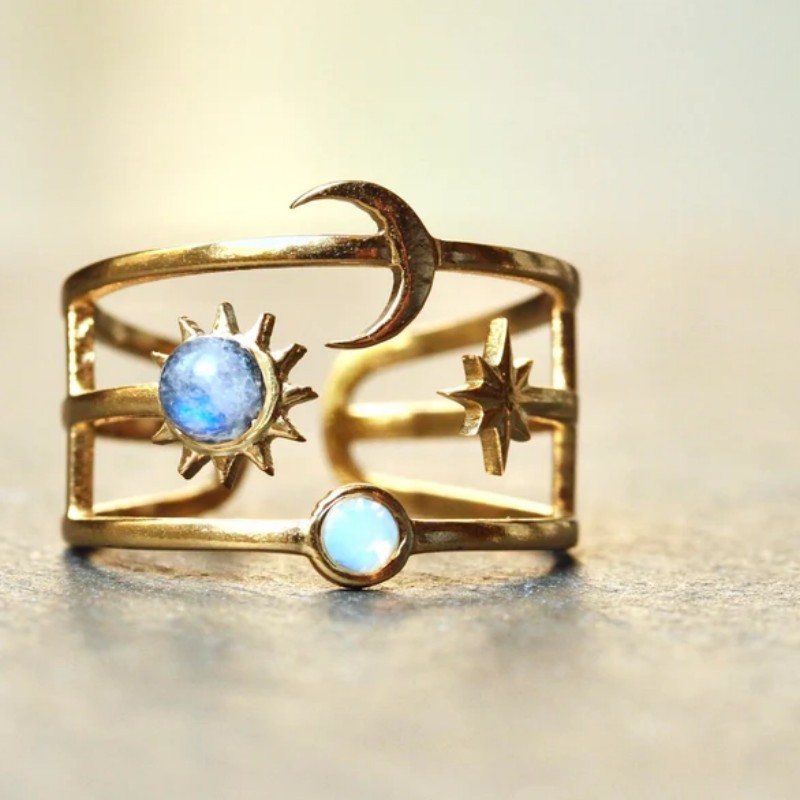 素馨クロスボーダー復古独立駅太陽月星月光石指輪ファッション女性開口指輪卸売り
