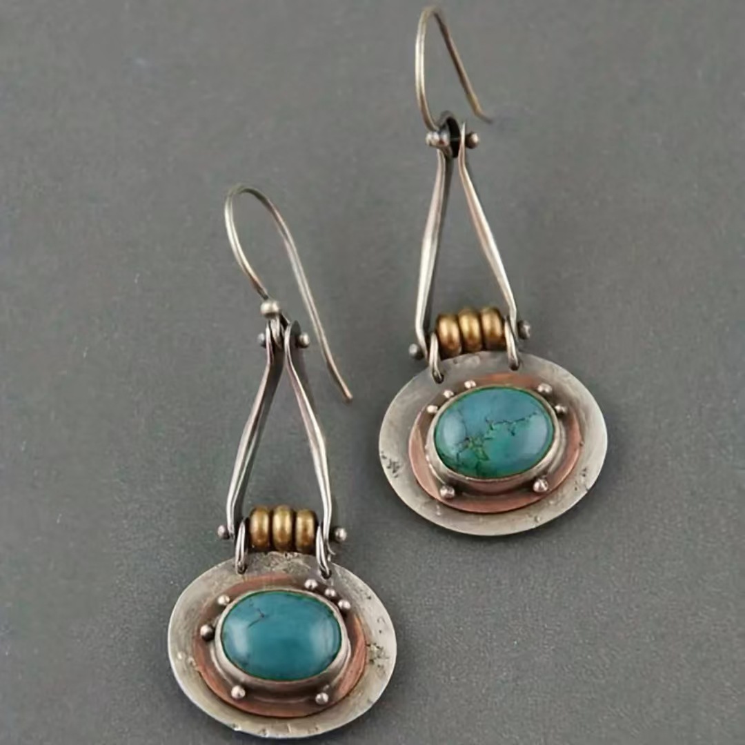素馨クロスボーダーボヘミアンレトロ幾何学ターコイズペンダントイヤリング卸売