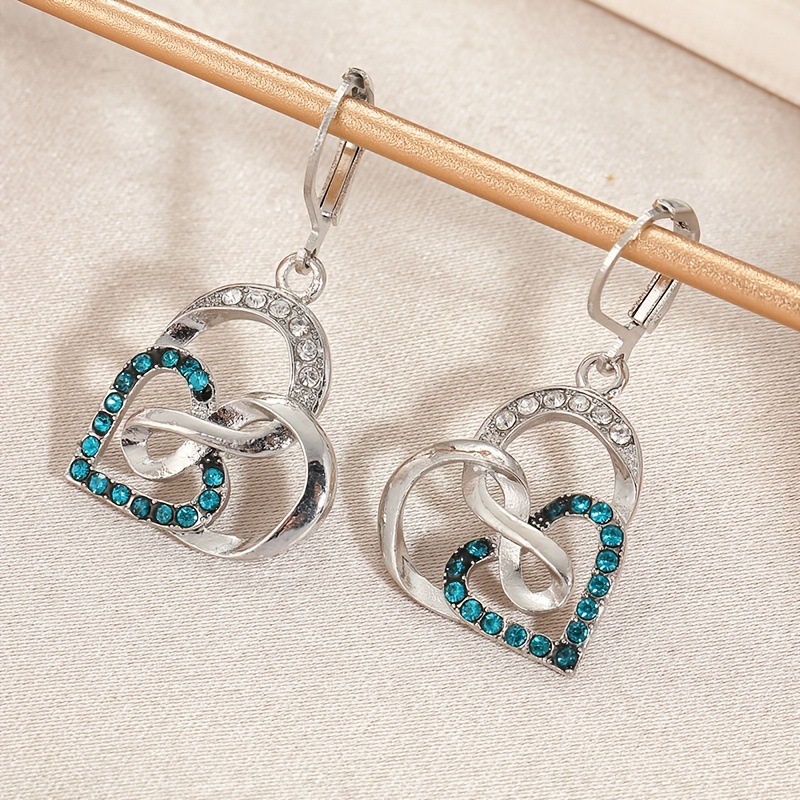 Suxin クロスボーダーホット販売クリエイティブレトロブルーダイヤモンドダブルハート巻きイヤリング女性のファッションライト高級ハイエンドイヤリング卸売