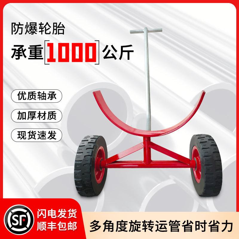 大型消防配管運搬台車、丸パイプ、丸鋼、PEパイプ、多機能輸送プッシュプルアーティファクト
