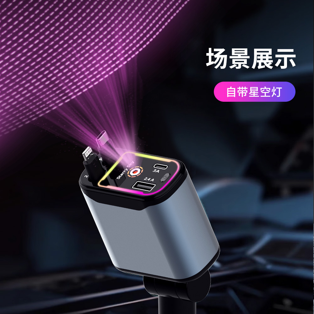 クロスボーダー新型スタートップ車載充電器携帯電話プロジェクター付き四合一ダブル伸縮線PDアップル快充