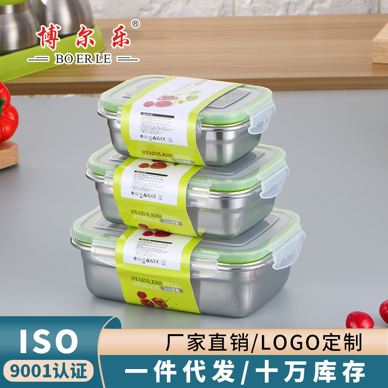 304ステンレス鮮度保持ボックススクエア冷蔵庫収納密封ボックススープ碗弁当箱三点セット