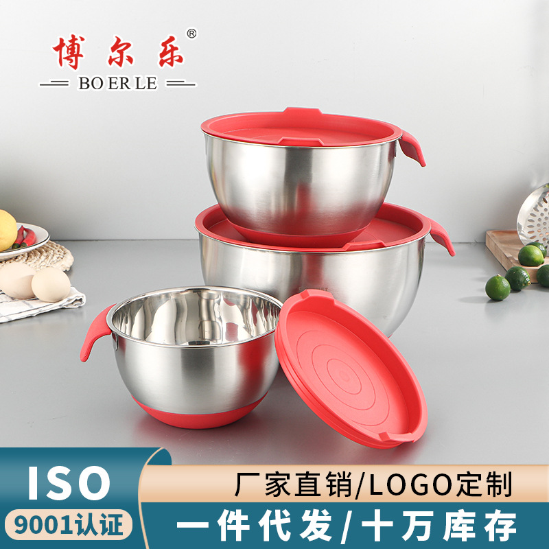 クロスボーダーの厚いシリカゲルの底の滑り止めのステンレスのたらいは卵のたらいのサラダの碗のサラダの碗と洗面器の米のたらいを洗います