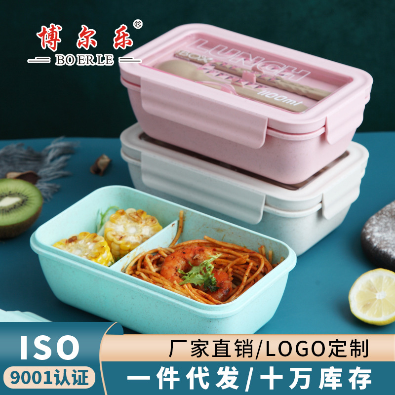 学生弁当箱ランチボックス小麦わら弁当箱電子レンジプラスチック新鮮箱日本式密封多格