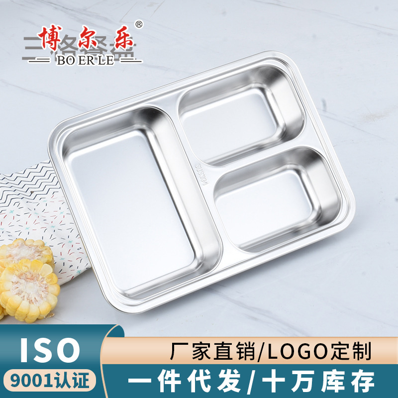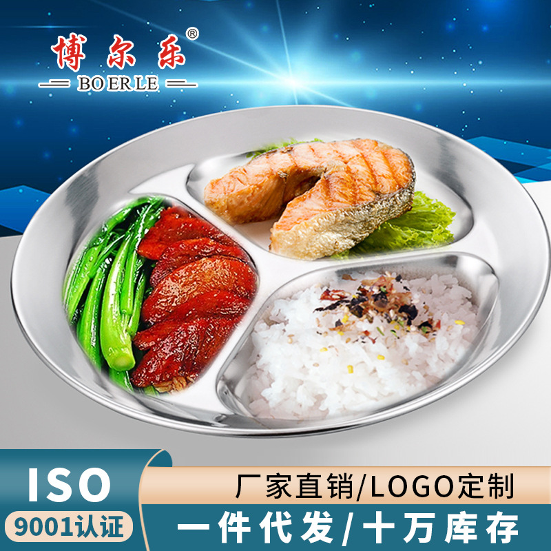 304ステンレスのファーストフードの食事皿を厚くして、食事皿を4、5格ずつ増やします。