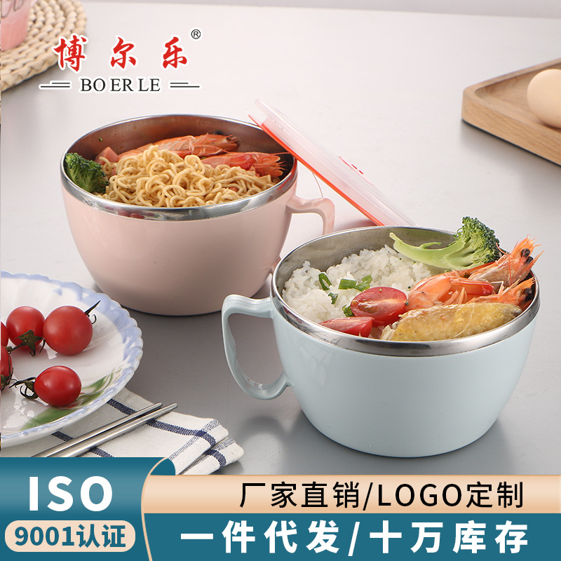 304ステンレスの韓国式のカップラーメンの碗は弁当を持って蓋の学生の寮の碗を持って家庭用のスープの碗の大きい碗の食器を詰めます。