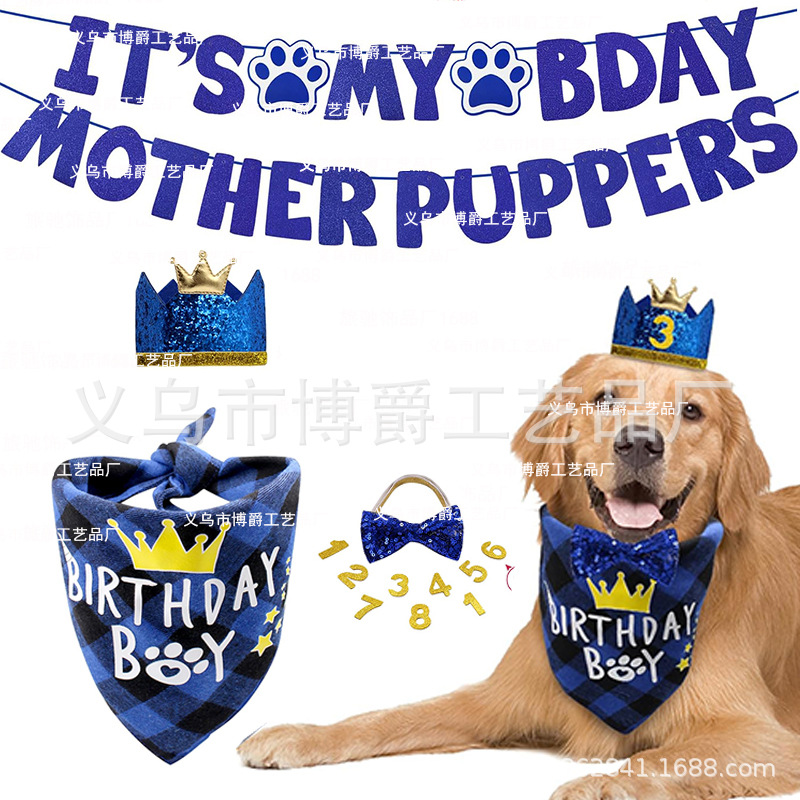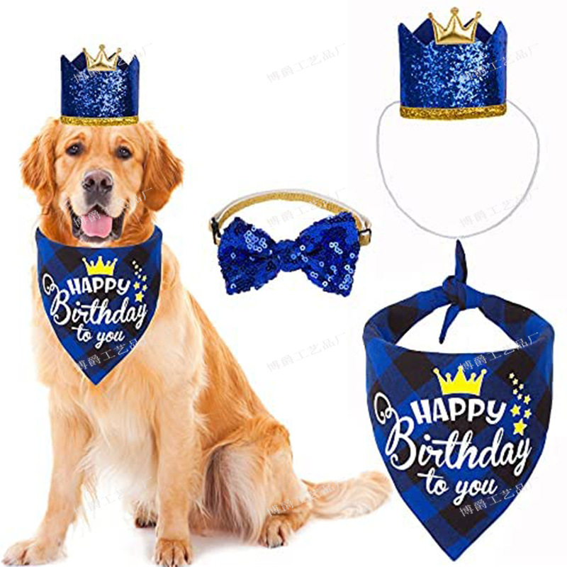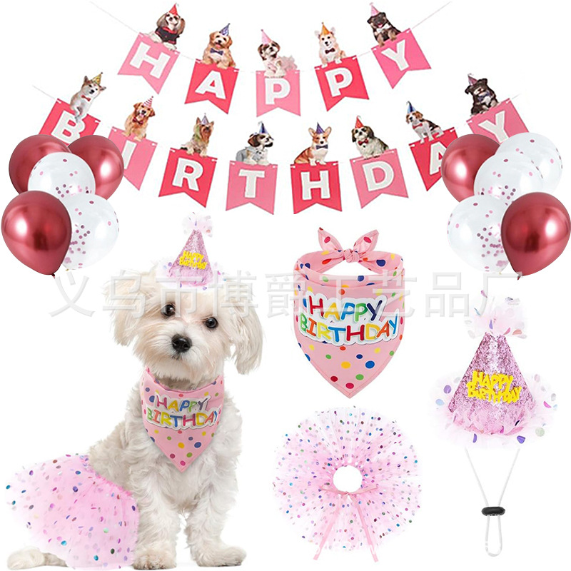 クロスボーダーペット誕生日フラッグセット犬誕生日帽子三角スカーフメッシュスカートセットペット犬用品