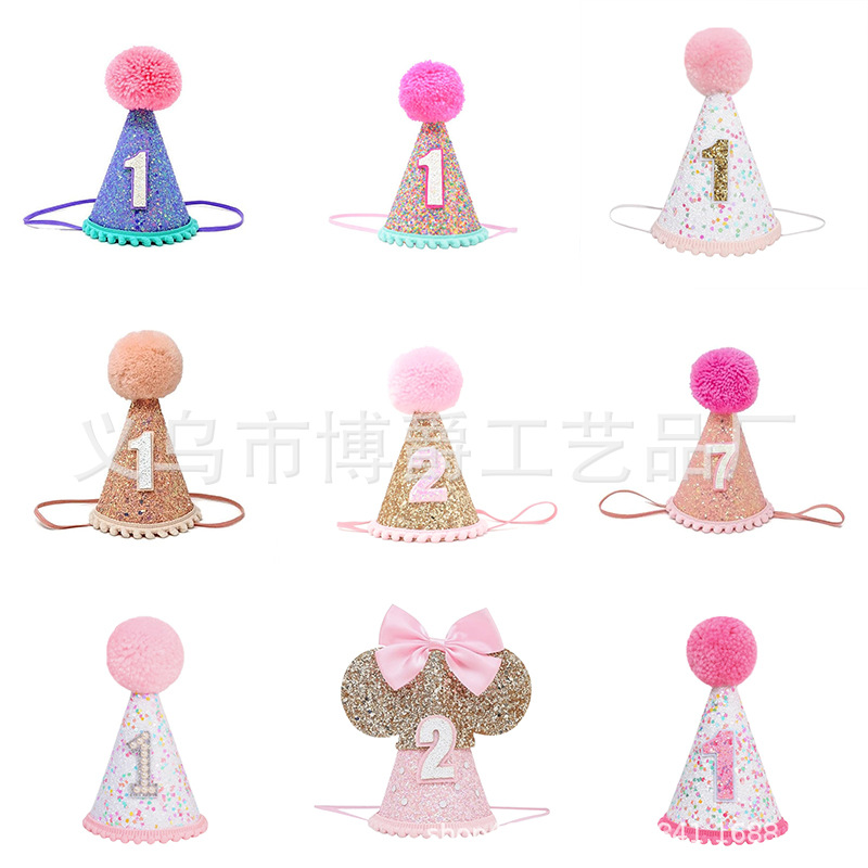 国境を越えた子供用誕生日帽子、赤ちゃんの1歳の誕生日用カラフルなグリッター帽子、ペットパーティーの装飾用ヘッドウェア