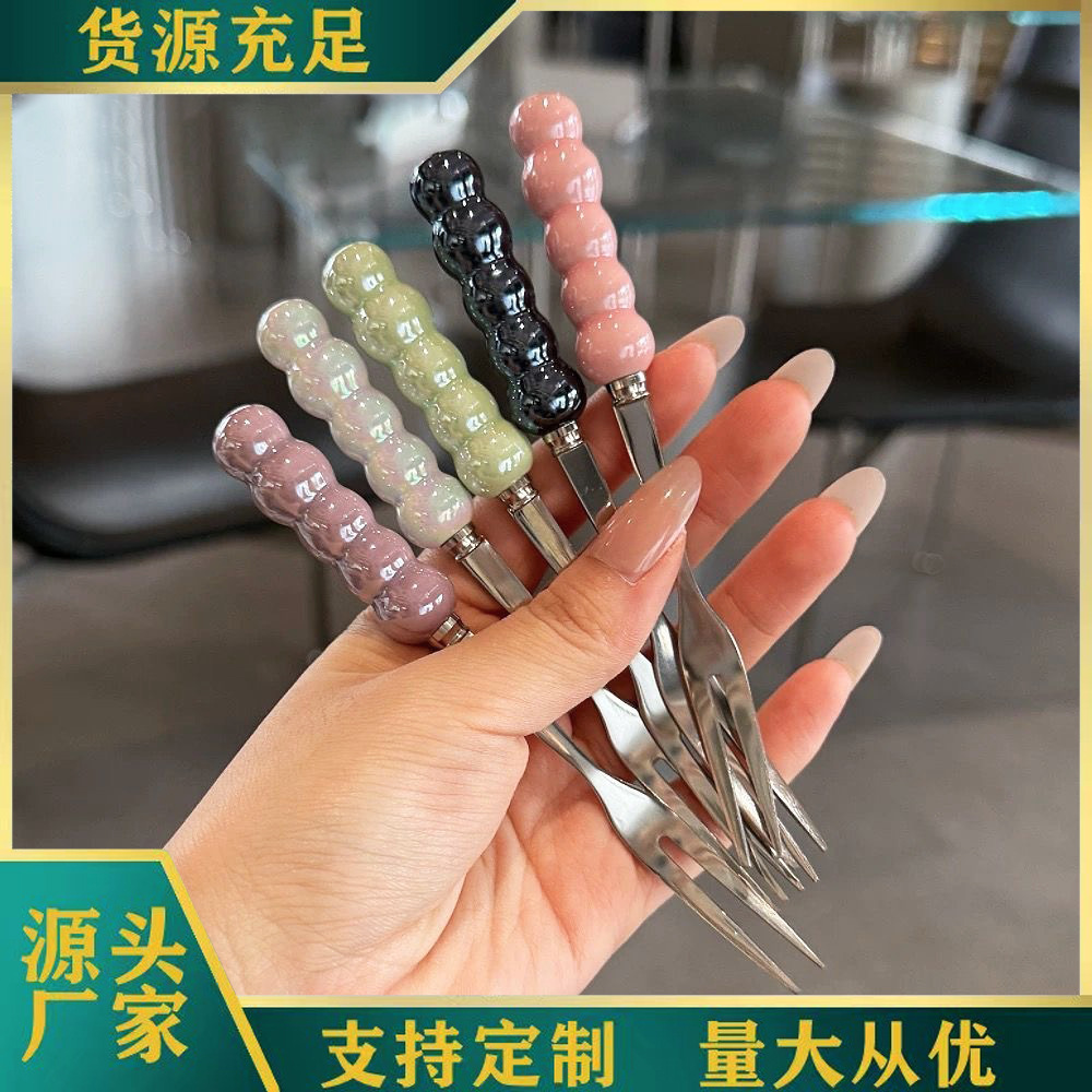 ステンレスフルーツフォークins高颜値可爱い真珠の小さなフォークセット子供用デザートケーキフォークフルーツくじ