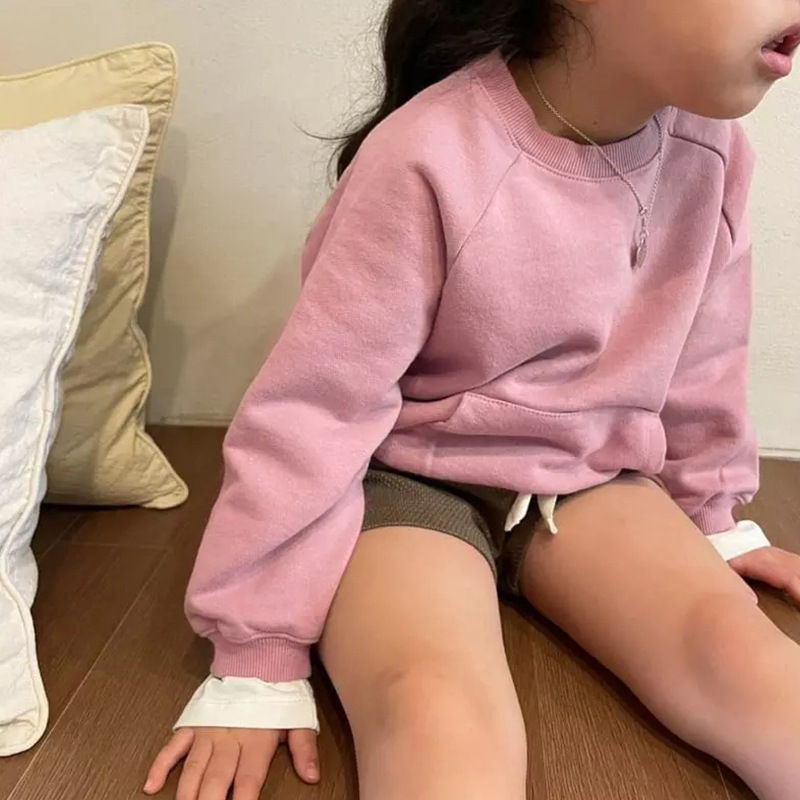 子供服無地 260 グラムラウンドネック長袖 Tシャツ春と秋の新韓国スタイルトップス厚手の暖かいボトムシャツ男の子と女の子用