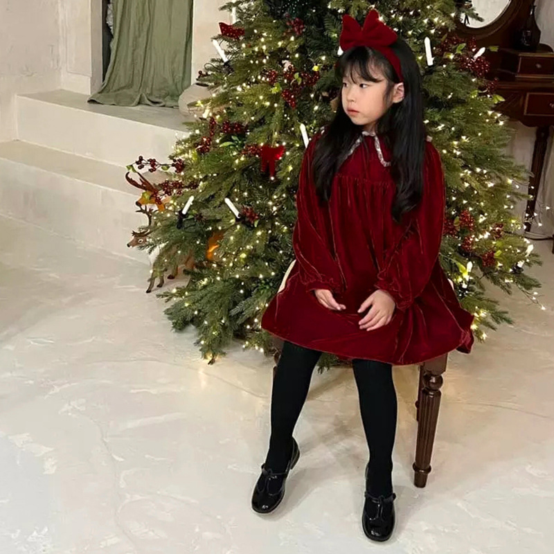 新年子供服スタイルベルベットドールカラードレス2025春の新スタイルかわいい気質スタイルプリンセスドレス女の子用