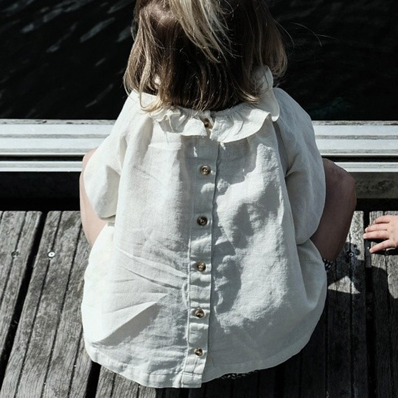 25 春と秋の新しい純粋な綿の蓮の葉の襟ベビードールシャツ女の子のためのかわいいルーズ長袖ベビーガール快適な無地トップ