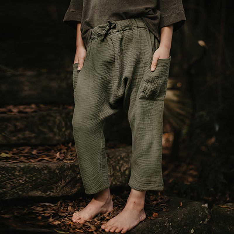小衆薄手二重綿糸子供防蚊ズボン夏男女赤ちゃんシンプルでゆるい腰カジュアルハーレムズボン