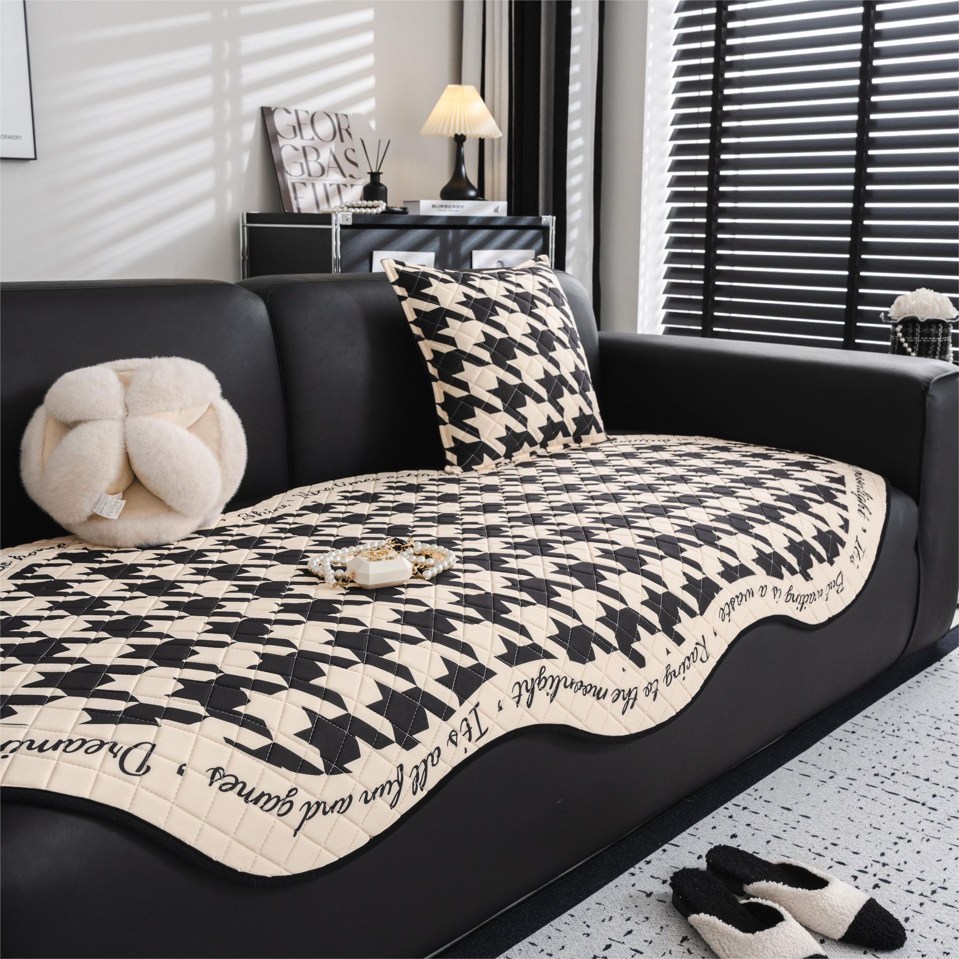 千鳥格ソファーマットラテックス夏氷糸ソファー座布団滑り止め不規則異形ソファーカバー布タオル夏