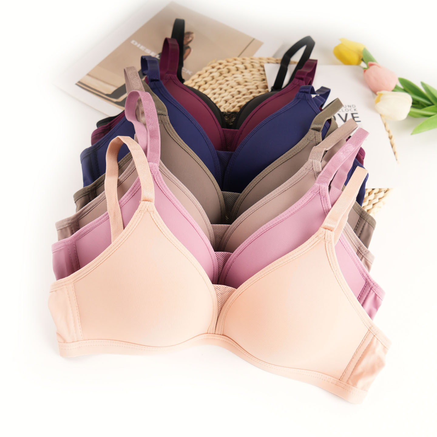 工場の現物にスチールリングのないブラジャー女性下着の光沢のある肌の薄いタイプの快適な通気性のシンプルなブラジャーbカップ