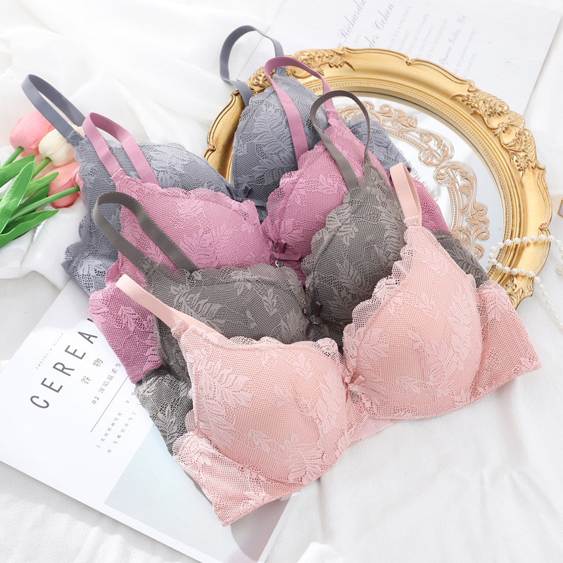 汕頭工場現物ハート型マットマントーカップは、小さな胸の下着を厚く集めて、女性はスチールリングのレース文ブラジャーを持っている