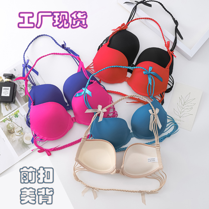 現物無鋼輪前ボタンブラジャー少女セクシークロス美背下着光沢面無痕上托集結ブラジャー夏
