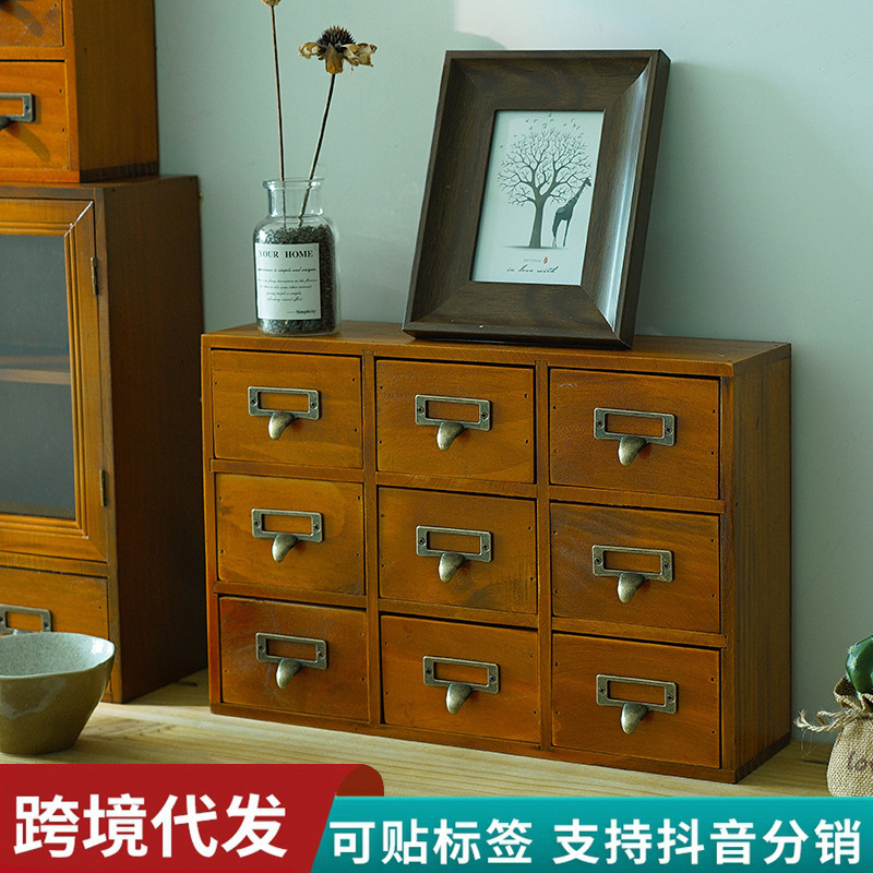 九宮格発カード収納箱レトロ多格トレーデスクトップ化粧品実木アクセサリー整理箱お土産セット