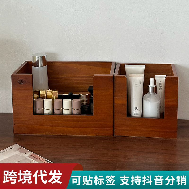 レトロ木製スキンケアマスク口紅棚ドレッサーデスクデスクデスク化粧品収納ボックス