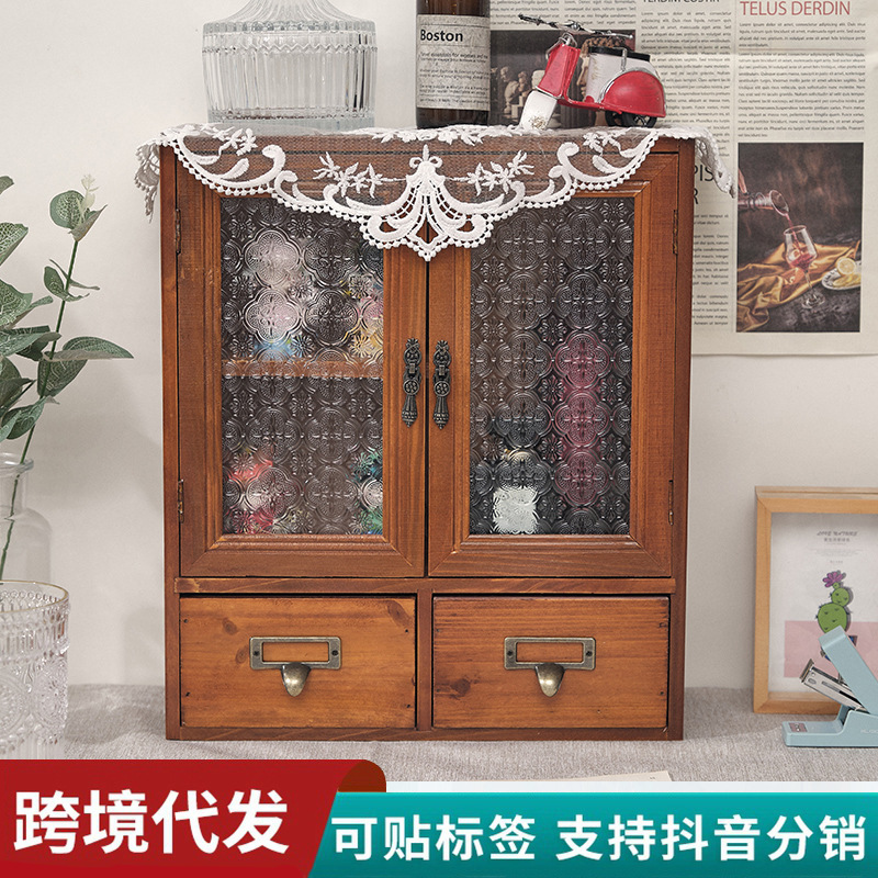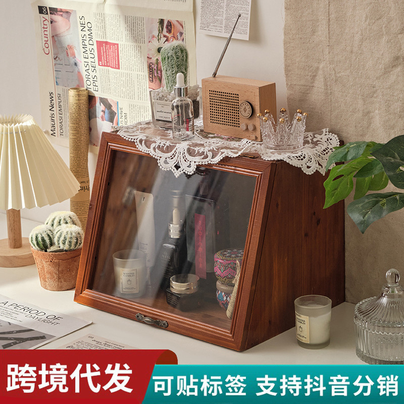レトロな無垢材の化粧品収納ボックスオフィス木製デスク防塵収納ラック香水ティーセット収納キャビネット