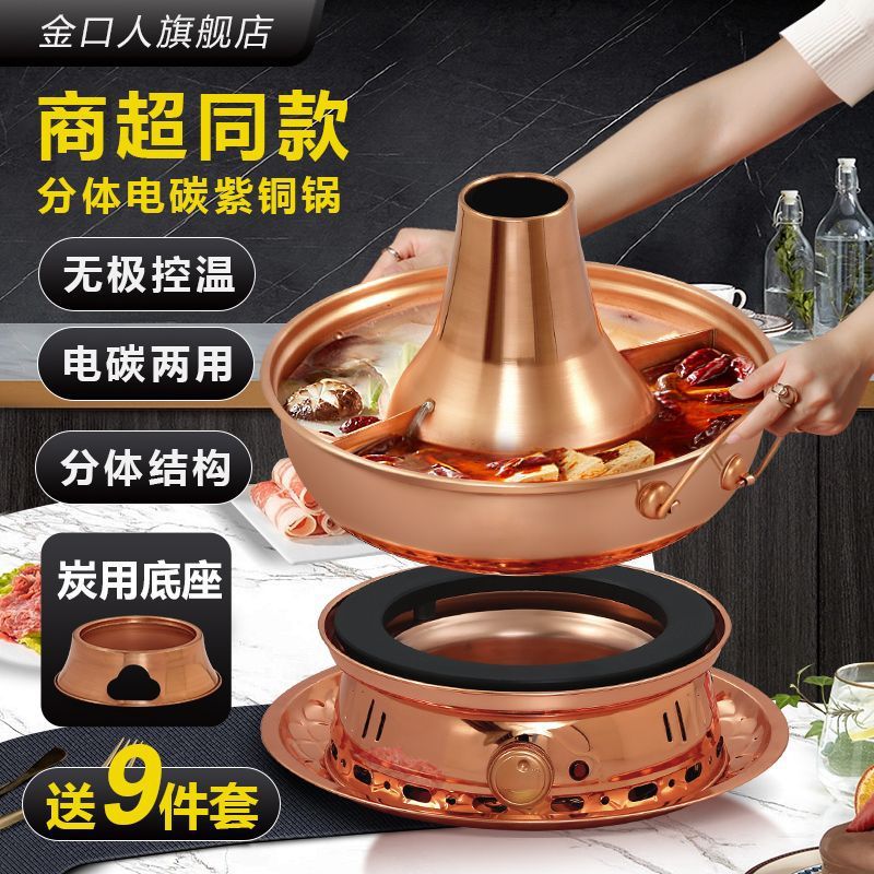 純粋な銅の電気炭素の銅の鍋の鍋の火の鍋の商用のアヒルの木炭の両用のレストランの旧式な銅の鍋の家庭用の分体