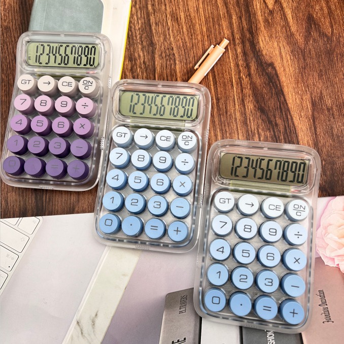 透明高颜値ドーパミン電卓オフィス大画面グラデーション円形学生ボタン財務コンピュータ起爆金