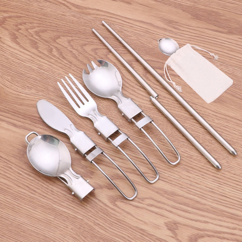 ステンレス折りたたみ食器ポータブルフォークサラダ折りたたみキャンプフォーク箸スプーンアウトドア登山趙周