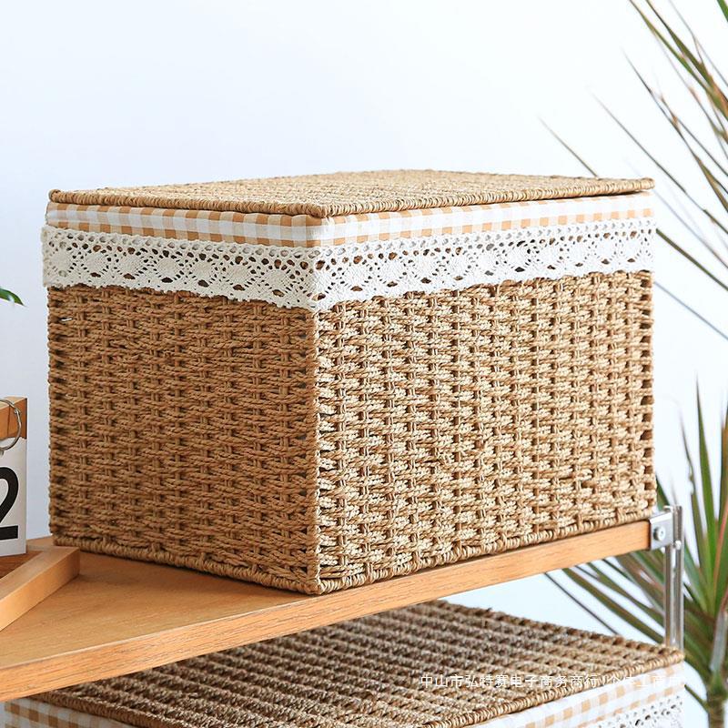 バスケット整理化粧品整理家庭用収納バスケット収納ケース衣類編みバスケット収納ボックス蓋付きスクエアスナック