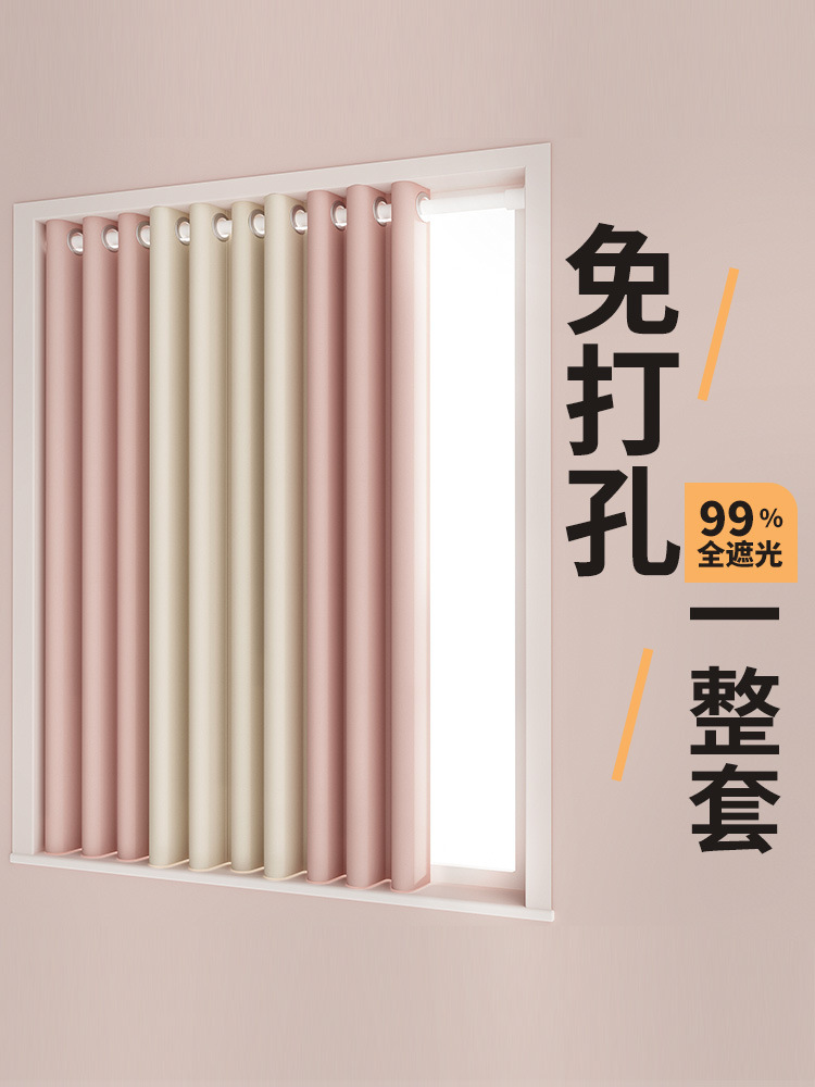 2024窓の窓の遮光神器のセットの新しい寝室のカーテンは穴を開けないで小さい部屋を設置します。