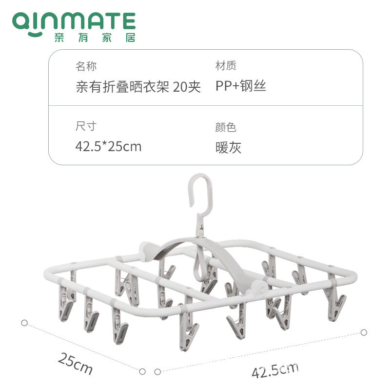 Qinyou 靴下乾燥ラック 20/24 クリップ家庭用衣類乾燥ラック、複数のクリップ付き下着ハンガー折りたたみ式多機能