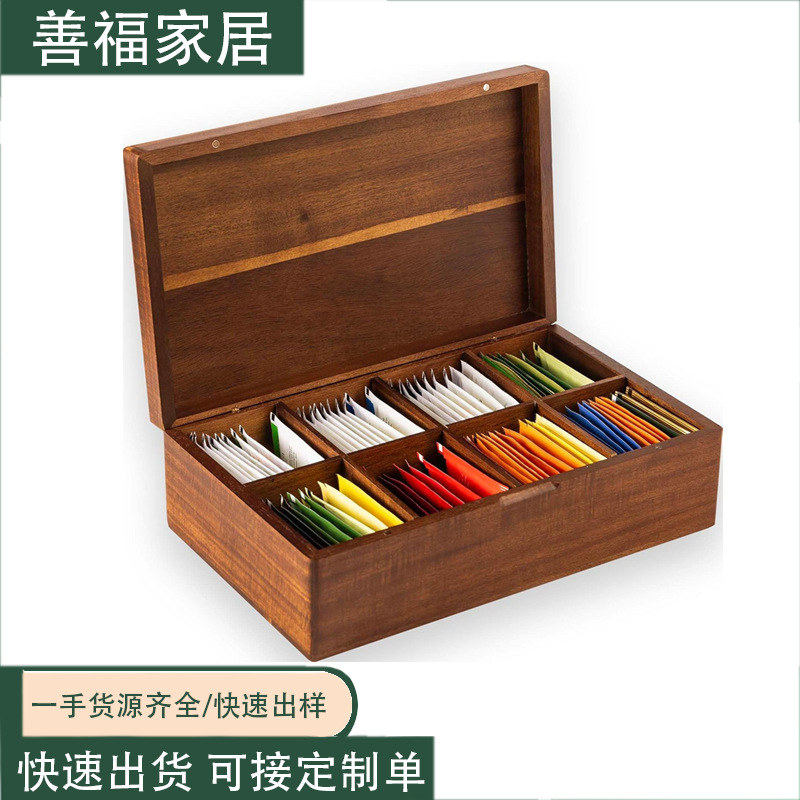 木製収納ボックス Jiugongge ティーバッグ収納ボックス家庭用無垢材ジュエリー収納ボックスティールームコーヒーバッグ収納