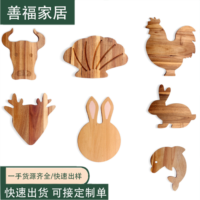 アカシア木製多機能チーズボードキッチンクリエイティブまな板ウサギイルカオンドリ貝殻型木製まな板
