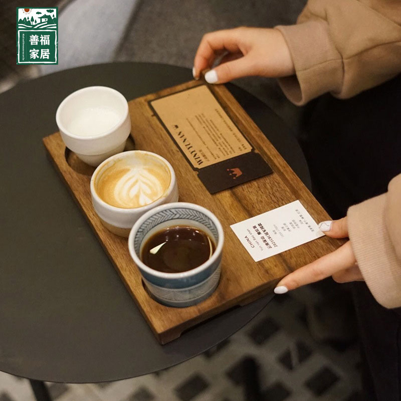 無垢材コーヒートレイ カフェドリンク 3コンパートメントトレイ 木製コーヒーカップホルダー 1豆3ドリンク木製トレイ ティートレイ