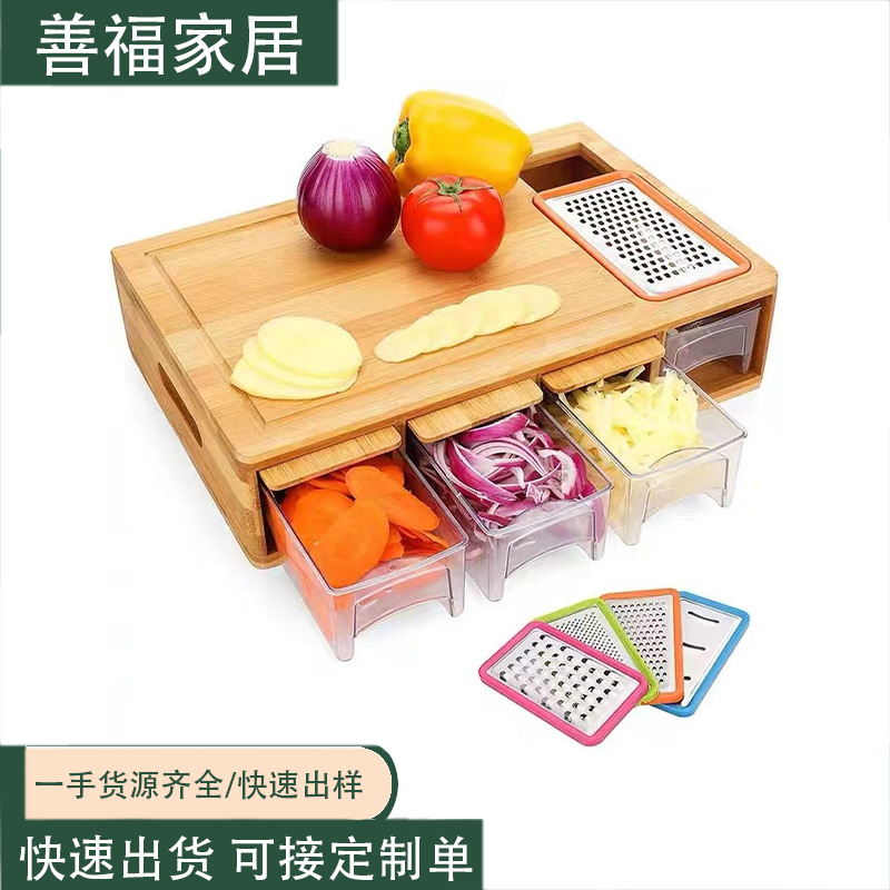 竹まな板多機能分類竹まな板引き出し付きセット家庭用キッチンおろし金まな板