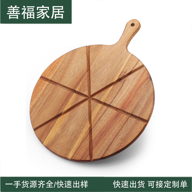 家庭用木製無漆牛植字アカシア木ピザ板トレーパン厚いハンドル付き調理まな板卸売り