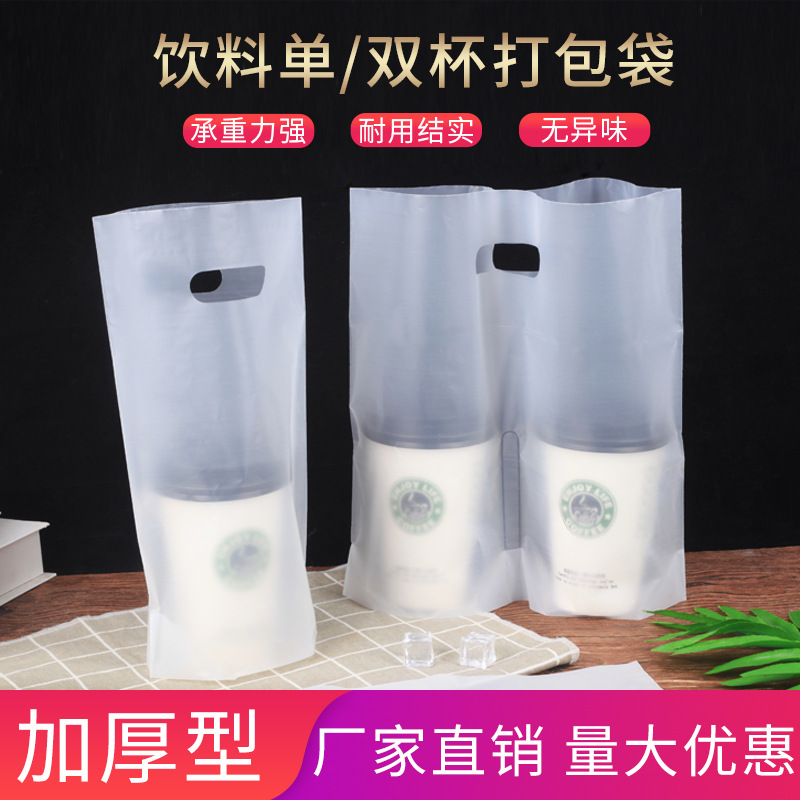 ミルクティー店の袋の包装袋の透明な使い捨ての飲み物のテイクアウトの手提げのプラスチックはシングル/ダブルカップで厚くなります。