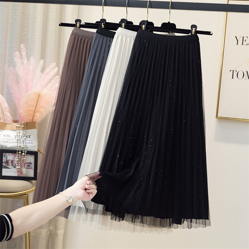 ガーゼスカート レディース ハーフレングス メッシュスカート リバーシブル ゴールドベルベット メッシュスカート プリーツスカート フェアリースカート ハイウエスト スパンコール