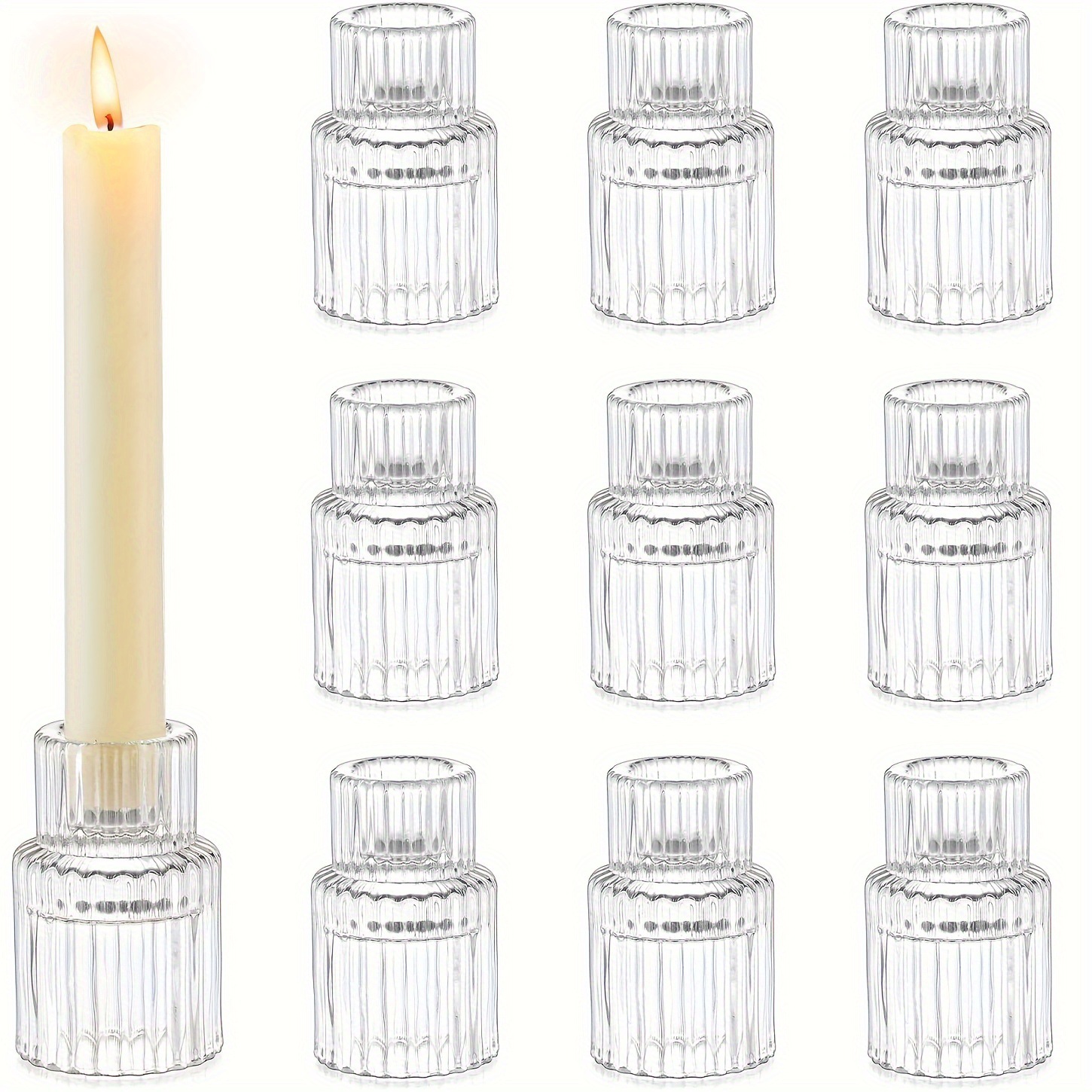 透明な短い円錐形のT字型ガラスキャンドルホルダー20個セット、クリスマスデコレーション