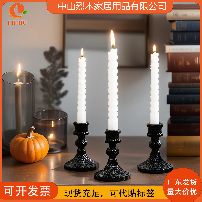 クロスボーダー中古ブラッククリエイティブガラスキャンドル背の高いテーブル雰囲気キャンドルベースins撮影道具装飾品