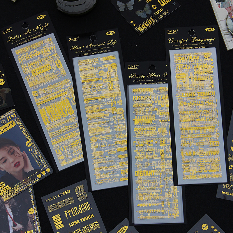 朝の光の記憶の復古の箔押し防水petの手の帳簿のシールのアイデアの英語のアルファベットの流行語の日記の装飾は貼ります