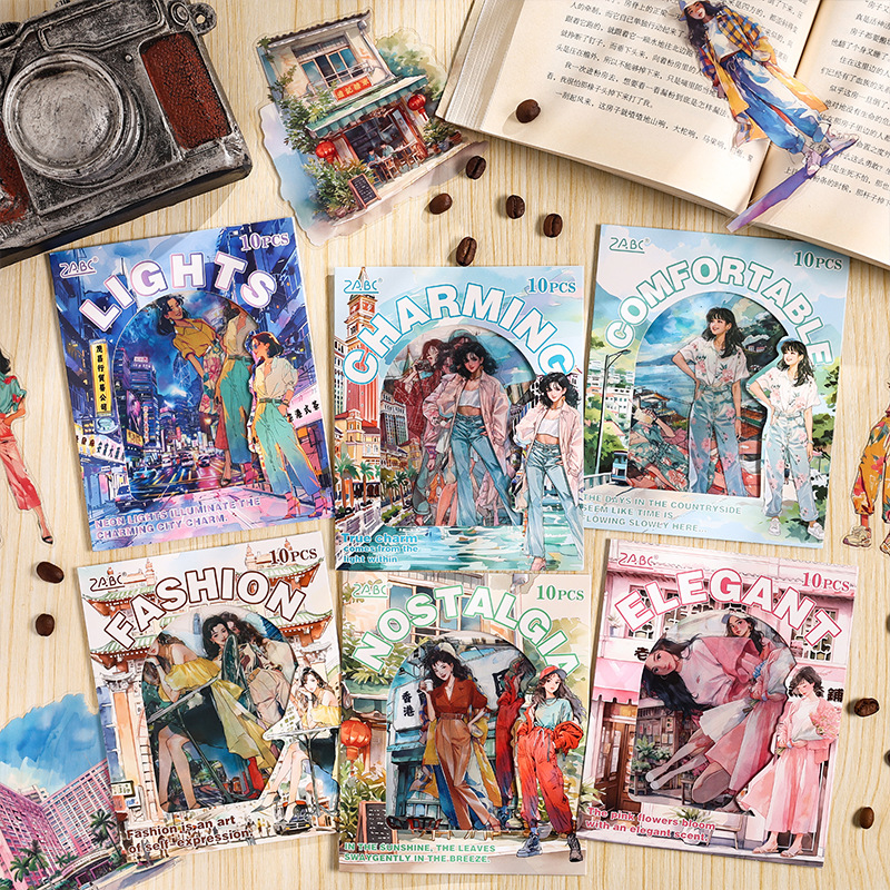 香港韻風尚透明防水petシールバッグdiy手帳日記貼り絵レトロな街の人物の女の子シール