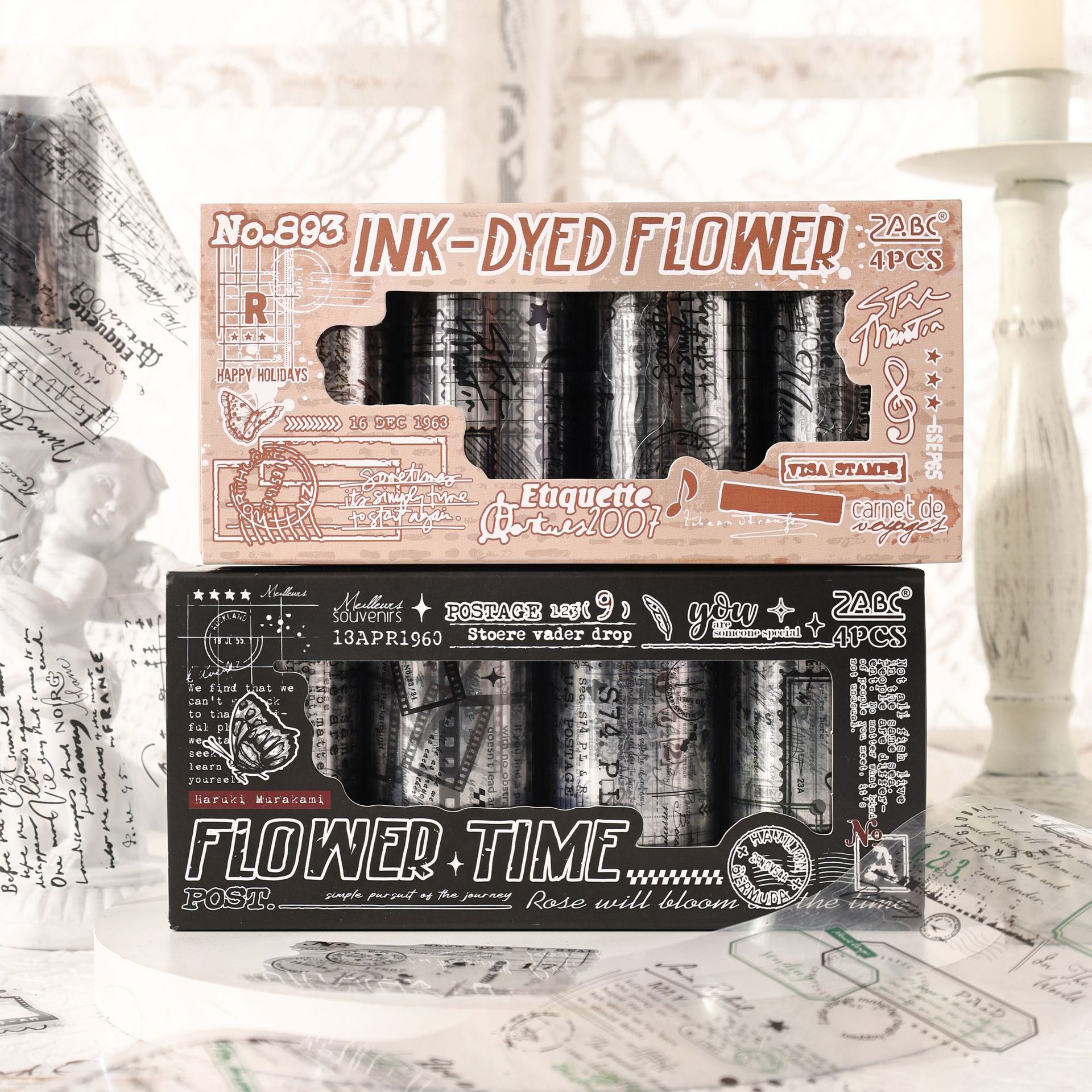 生活実験室特油防水pet手帳テープクロスボーダー英語白黒要素箱入りテープシール巻き