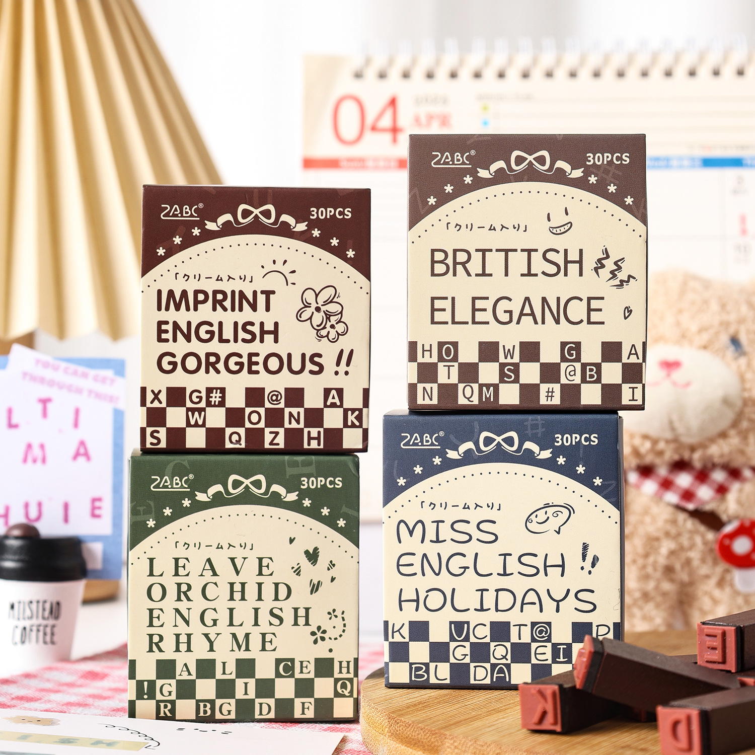 英語年木製シールセットボックス diy ハンドブック日記印刷クロスボーダー大文字記号蓮木シール