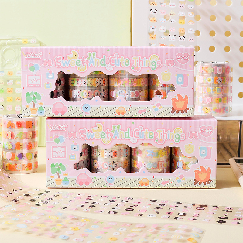 甘い萌え物透明防水petテープセット箱クロスボーダー漫画動物顔表情貼りdiy手帳シール