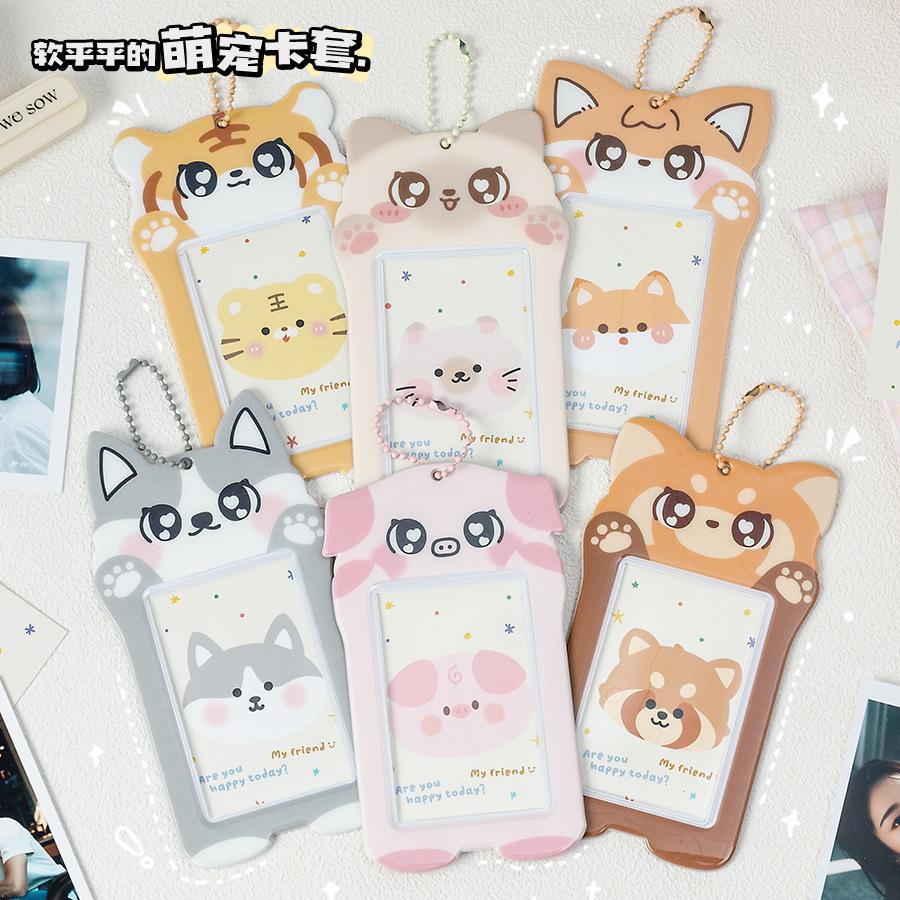 ソフトフラット萌えペットカードセットアニメ動物3インチpvcキーホルダーカードセットバスカードご飯カード収納カードバッグストラップ